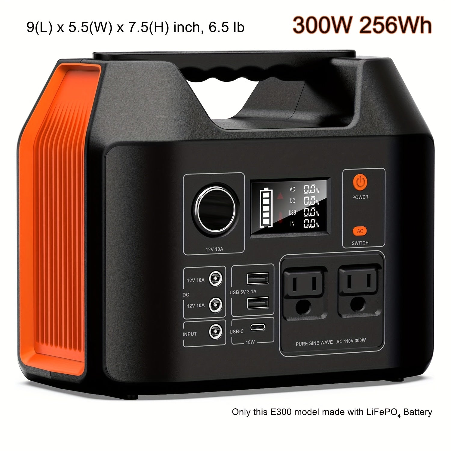 300W/100W Portable Power Station Solar Generator - 296Wh/256Wh/280Wh/146Wh Compact Lithium-Ion Battery Charger with 110V AC Outlet, DC & USB Outputs, LED Flashlight, Built-in Cooling Vents for Camping, RV, Emergency Home Use,
