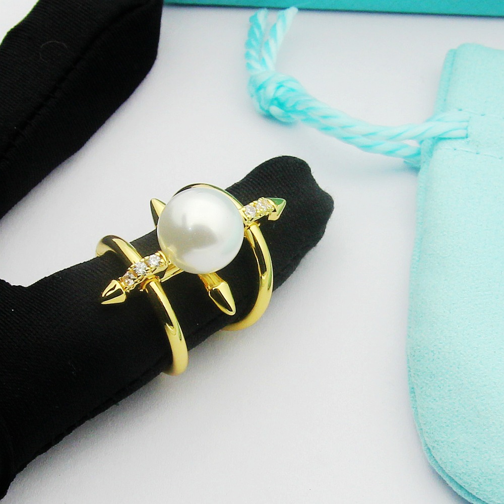 T Letter Double Ring Bullet Pearl Diamond Ring